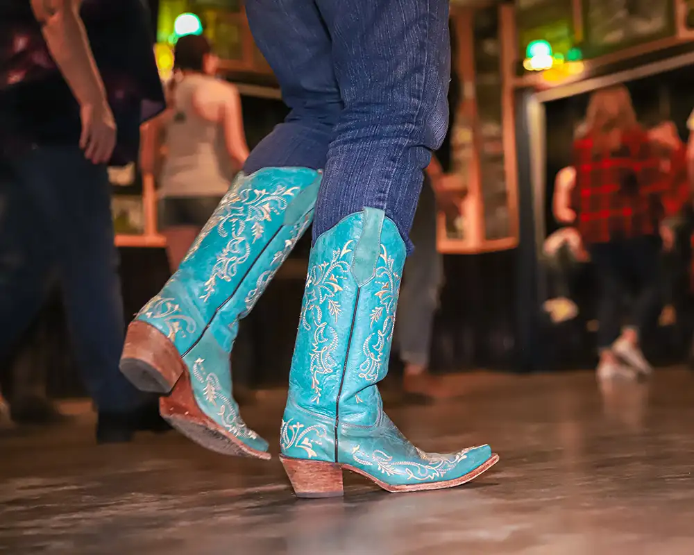 In country line dancing, you don’t need a dance partner. That makes it perfect for hitting the dance floor at a country dancehall, whether you have someone to dance with or not.